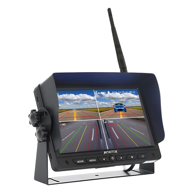 AHD Sürücü Monitorinqi Kabin İçi Görünüş KamerasıCarleader 7 düymlük BSD Kor Nöqtələrin Aşkarlanması Simsiz Monitorinq Sistemi, süni intellekt aşkarlama funksiyası ilə inteqrasiya olunmuş rəqəmsal simsiz kamera sistemi, piyada və nəqliyyat vasitəsinin aşkarlanması və həyəcan siqnalını dəstəkləyir, sürücünü avtomobilin ətrafındakı vəziyyət haqqında xəbərdar edir. 4 kanala qədər 720P simsiz kameraların avtomatik cütləşməsi, hər bir kanal AI aşkarlama funksiyasını dəstəkləyir. Faktiki quraşdırma mövqeyinə və bucağına görə aşkarlama sahəsinin ölçüsünü tənzimləmək üçün daxili AI kalibrləmə menyusuna baxın. Monitor Döngü qeydinin isteğe bağlı funksiyasını dəstəkləyir, 256 GB-a qədər SD kart yaddaşını dəstəkləyir.