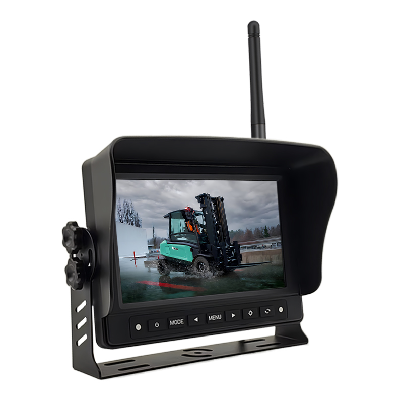 AI Kor Nöqtə Aşkarlama Arxa Görünüş Kamerası Quraşdırılmış Səs və İşıq SiqnalıCarlider 7 düymlük suya davamlı 2,4 GHz rəqəmsal simsiz ağır kamera monitor sistemi, qabaqcıl suya davamlı rəqəmsal simsiz kamera və monitor sistemi, IP69K suya davamlı dizayn, forklift kimi açıq havada istismar tələb edən istənilən avtomobil üçün mükəmməldir. traktor, kənd təsərrüfatı maşınları və tikinti maşınları. Tam şəxsi alət məhsulları, hər hansı bir təfərrüat üçün xahiş edirik.