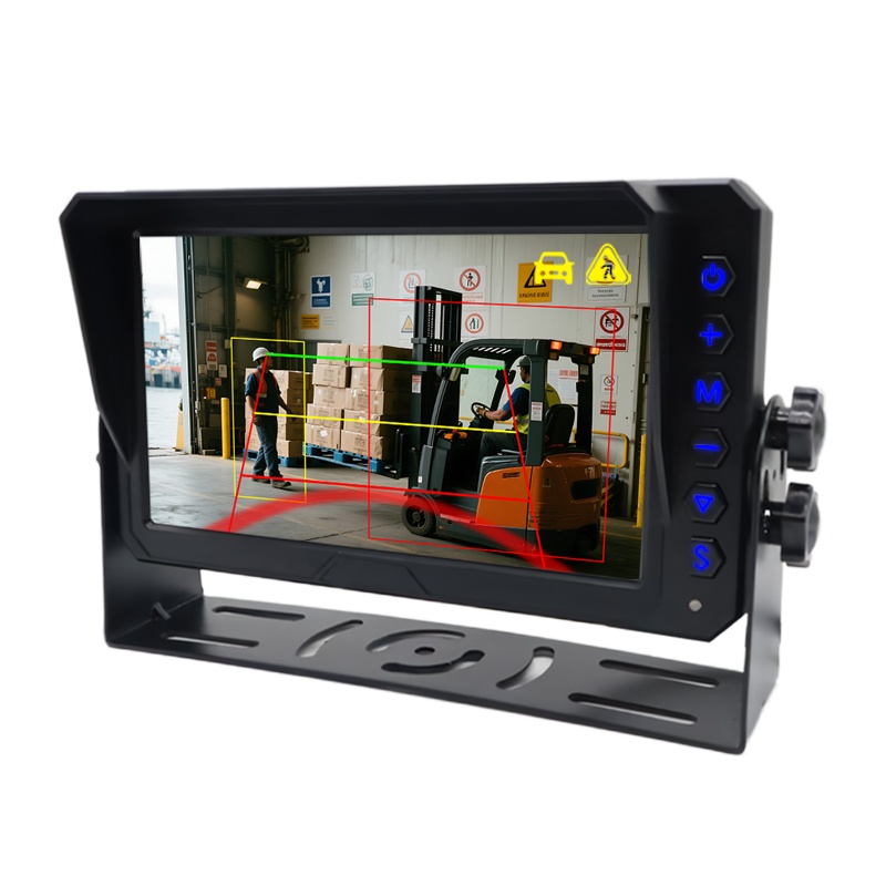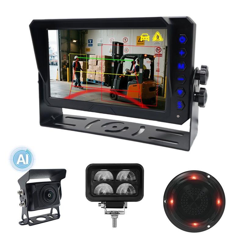 AI Kor Nöqtə Aşkarlama Arxa Görünüş Kamerası Quraşdırılmış Səs və İşıq SiqnalıCarlider Forklift üçün AI Piyada və Vasitə Aşkarlama Lazer İşığı Xəbərdarlıq Kamera Sistemi, forklift üçün işləyən AI BSD kamera sistemi, U formalı lazer xəbərdarlıq işığı və səs və işıq siqnalı ilə təchiz olunmuşdur ki, bu da ətrafdakı piyadaları və nəqliyyat vasitəsini işləyən forkliftdən uzaqlaşmaq barədə xəbərdarlıq etmək üçün daha yaxşı performans göstərməyə imkan verir. Bu sistem süni intellektlə kor nöqtə aşkarlama funksiyasını dəstəkləyir, piyada və avtomobili aşkarlaya bilir. Aşkarlama zonasını tənzimləmək üçün daxili süni intellekt kalibrləmə menyusu, piyadaların aşkarlanmasının yandırılması/söndürülməsi, avtomobilin aşkarlanmasının yandırılması/söndürülməsi və s. Forklift əməliyyatının təhlükəsizliyini artırmaq üçün qabaqcıl həll.
