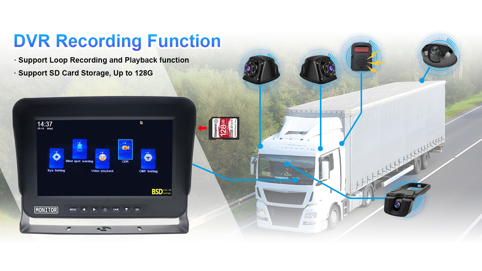 CL-S1018BSD-DVR: 10.1 düymlük nəqliyyat vasitəsi BSD kor ləkə aşkarlama sistemi