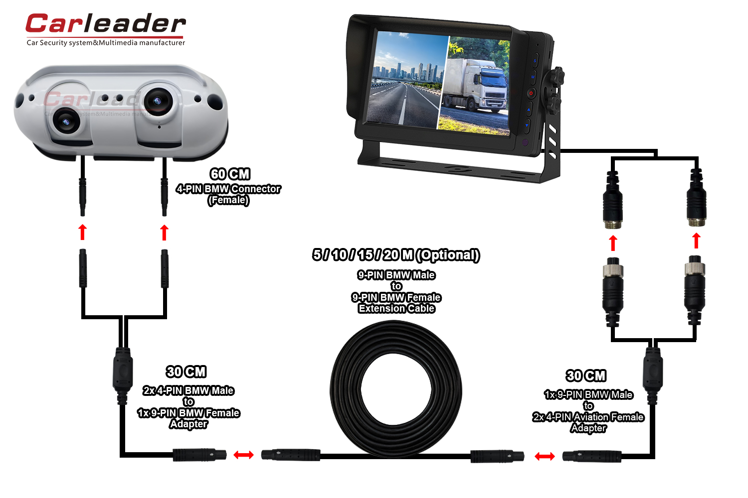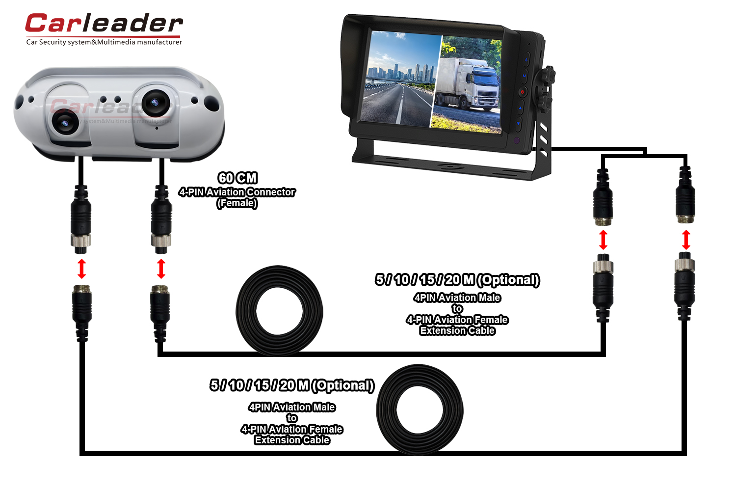 Carleader, müxtəlif naqil ehtiyaclarına uyğun AHD Starlight Dual Lens Heavy Arxa Görünüş Kamerası üçün iki fərqli naqil həlli təklif edəcək: