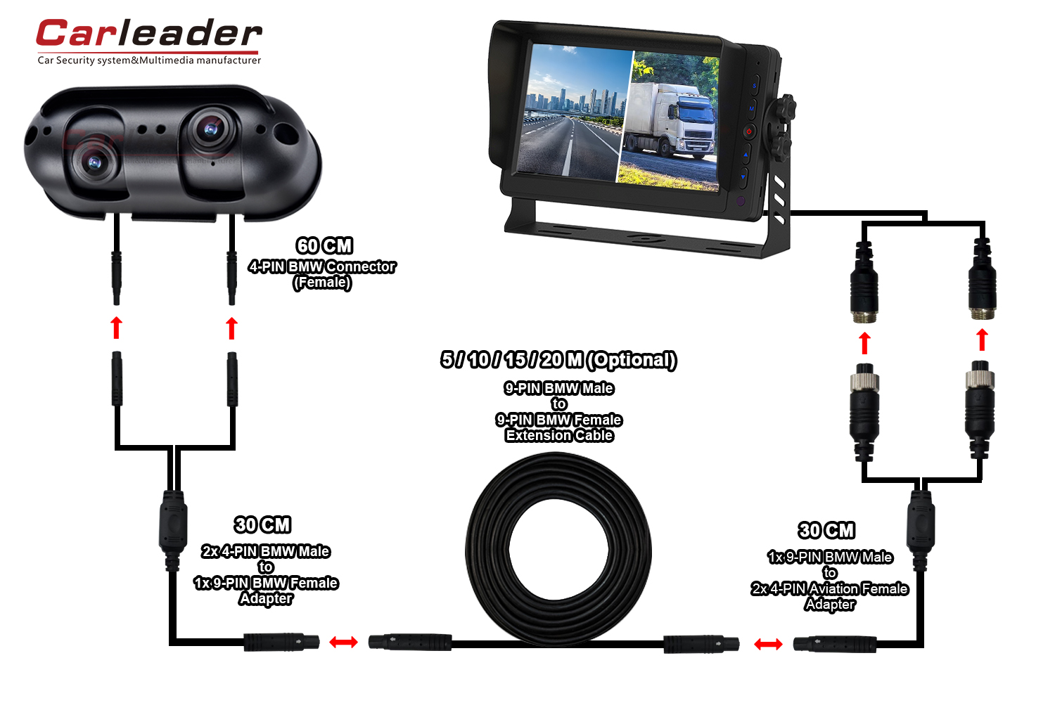 IP69KStarlight AHD Dual Lens Heavy Duty Reversing Camera, əla keyfiyyətli yeni dizayn edilmiş xüsusi alətli AHD kamera, bir kamerada ikili linza ilə inteqrasiya edilmiş və ayrıca tənzimlənən obyektiv bucağı, istifadəçiyə eyni monitorda həm yaxın, həm də uzaq məsafəyə baxmağa imkan verir.